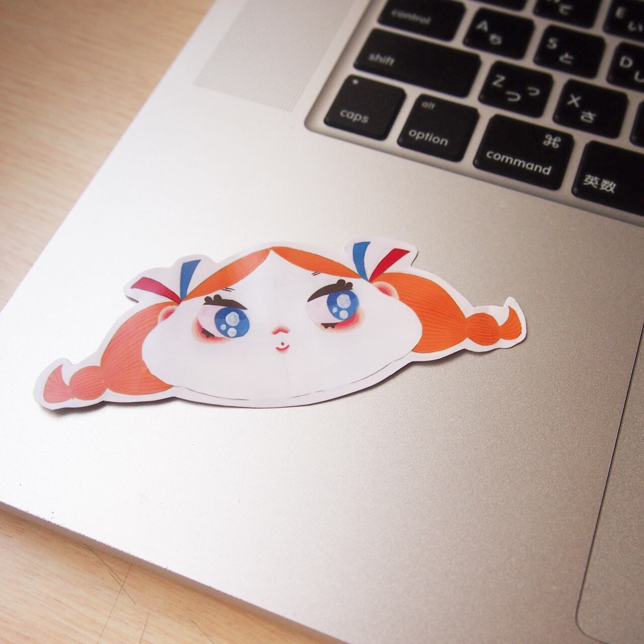 大きな瞳が印象的な女の子のステッカーです。